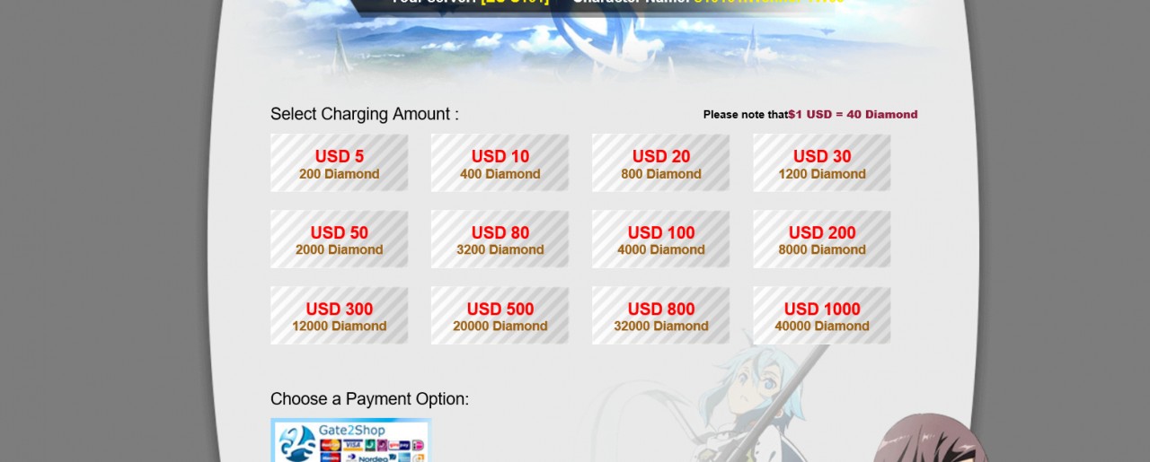 I originally picked up this game when I seen the offer on Bananatic. I've been a fan of anime for about a year and a half, but have never seen Sword Art Online. So, I didn't think I'd like the game. However, it was rather good for a browser game. For this reason, I kept on playing after I had completed the quests on the site. I should start by saying that I haven't paid for anything in the game to get to where I am, but I have seen people who have paid and are dramatically more powerful than I will likely ever be in the game. A lot of things are only claimable after you have "topped up" (The game's way of you paying). This is when you pay real currency for the game's premium currency. Using this, you can definitely cut a lot of corners leaving the F2P players in the dust. Here's the price for the premium currency for reference.