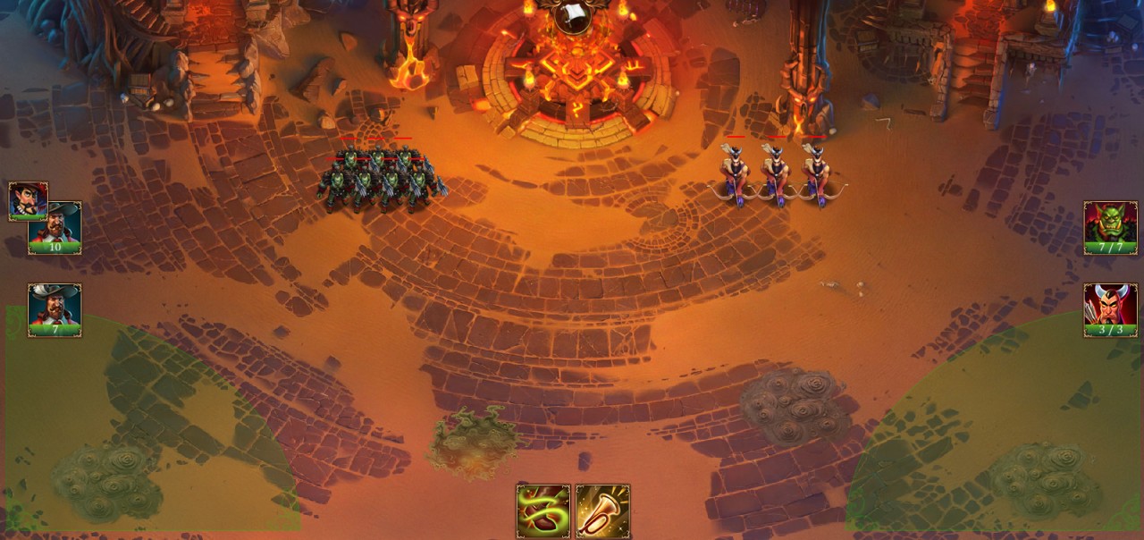 Aber was hilft die beste Grafik, wenn das Spiel selbst langweilig wäre? Neben der typischen Stadtansicht, wo der Benutzer jedes erdenkliche Gebäude bauen, verschieben und verbessern kann gibt es auch ein Kampfsystem, welches um einiges interessanter gestaltet ist als gewöhnlich. Anstatt einfach deine Einheiten auszuwählen und in den Kampf zu schicken, wo per Würfel und ohne Animation entschieden wird wer gewinnt, gibt es in Age of Musketeers ein eigenes Schlachtfeld (siehe Screenshot), in dem der Benutzer seine Einheiten strategisch platzieren, Zauber wirken und Helden kämpfen lassen kann. Mit ebenfalls detailreichen Kämpfern und Orks sieht der Kampf um einiges lebendiger aus. Mittels Forschung, besseren Ausbildungsgebäuden und Zaubern kämpft man sich langsam durch die Horden an Feinden, um unterworfene Siedlungen zu befreien.