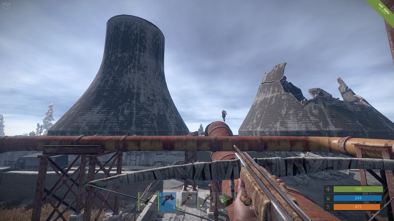 Auch sollte man sich vor den Städten in Acht nehmen, da diese größtenteils verseucht sind. dennoch ist der Reiz dennoch immer größer als die Angst und man wagt sich oft für kurze Zeit in die gefährlichen Städte. Da meistens dort auch oft Gegenstände versteckt sind die einem das überleben auf der Insel um einiges erleichtern und gerade am Anfang einen deutlichen Schub nach vorne geben und man sich dann auch verteidigen kann gegen andere weitaus mehr erfahreneren Spieler. Doch auch ist jede Stadt unterschiedlich und legt einen Schwerpunkt auf ein anderes Gebiet, so gibt es Städte die einen Hafen besitzen und auch direkt mit dem Schienenanschluss zum Bahnhof versorgt sind. Auch die Energieversorgung sollte dort nicht zu kurz kommen und man kann ein verlassenes und heruntergekommenes Atomkraftwerk begutachten sollte aber immer die Radioaktivität im Auge behalten, da diese dort oft am höchsten ist und sehr gefährlich ist.