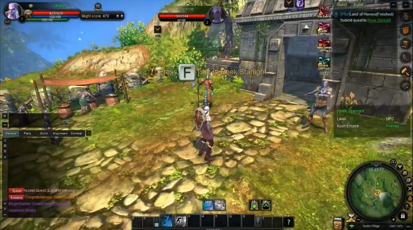 El juego tiene la sensación de un Word Of Warcraft, lo que hace que te sientas muy familiarizado con las opciones y con las funciones con los teclados, esto es un punto muy positivo para este titulo, ya que muchas de las ocasiones se trata de modificar tanto el juego que termina perdiendo ese toque, al que estamos acostumbrados los jugadores del mmo, otro punto a destacar es que el juego no cuenta con auto-ruta lo que permite tener mayor libertad en el mundo, le permite también utilizar el mapa que se encuentra en la parte inferior derecha de la pantalla, ahí puedes observar las misiones principales y las secundarias, el juego conserva de los títulos similares que se juegan por medio de navegadores web, algunos iconos como lo son las tiendas, formularios especiales, paquetes promocionales, etc., que siempre serán visibles en la parte superior derecha de la pantalla, para los jugadores que han estado en franquicias similares sabrán que es común ver los iconos.