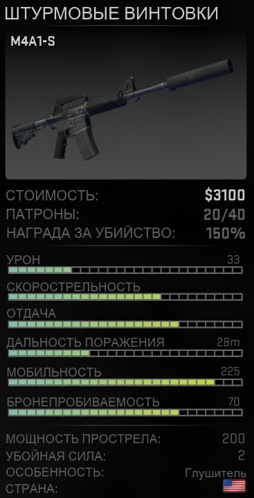 M4A4 или M4A1-S. Это наверное самая частая и сложная дилемма в CS:GO, ведь штурмовая винтовка – основное оружие в игре. Вопрос о выборе между АК-47 и любой Мкой не ставится, так как все знают, что калаш в грамотных руках - смертельное оружие, которое нельзя ставить в один ряд с M4A4 или M4A1-S (убийство с одной пули в голову, но при этом сильная отдача). Так как большинство игроков в кс представляют, что такое спрей из АК-47 (и хоть немного, но знают его), то тут появляются новые нюансы в выборе между M4A4 или M4A1-S. Спрей из M4A4 больше походит (по самому рисунку и длине рисунка (то расстояние, на которое отклоняется ствол при зажиме)) на спрей из АК-47, чем из M4A1-S. Следовательно, если вы при игре с калашом предпочитаете спрей, то вам следует играть с М4А4 (так как при зажиме ваш шанс убить – выше). А вот если вы стреляете коротки очередями (по 2 - 4 пули), то вам, естественно, следует выбрать M4A1-S (так как там отдача (следовательно и разброс) - ниже). К этой винтовке есть бесплатный скин к CS:GO